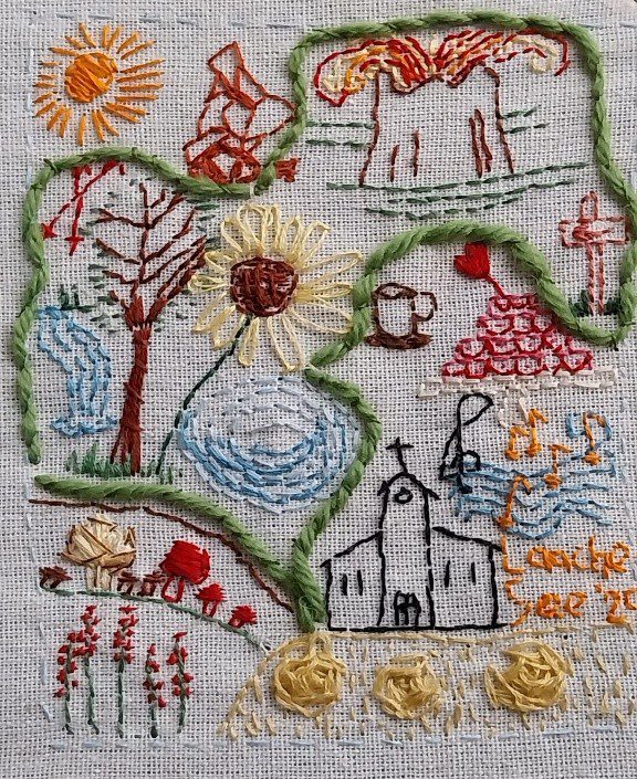 Onder de deelnemers bleek ook nog eens veel creativiteit. Eén van de deelnemers, Hanske, heeft de hele week in beeld gebracht in een borduurwerk. En tijdens de laatste avond werd een lied ten gehore gebracht waarin de hele week nog even passeerde. Kortom een fantastische week dankzij het voortreffelijke weer en de input van de deelnemers.