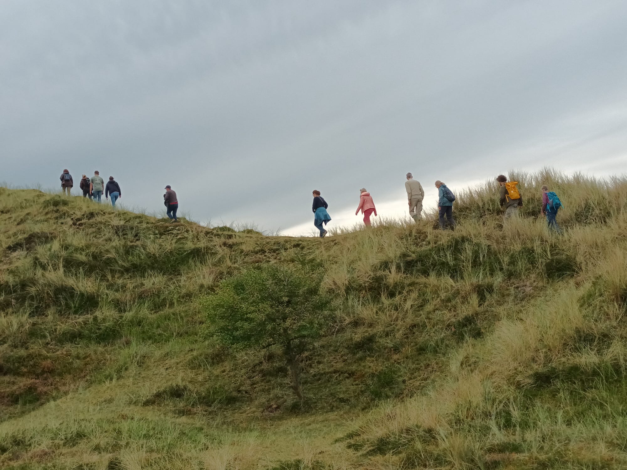 We zijn met een wandeling van Staatsbosbeheer mee geweest. Verhalen over eendenkooien, de recreatielandjes, hoe de cranberries op Terschelling zijn gekomen. Zonnedauw gezien, lamsoor, zeekraal en zee-aster ‘geproefd’. Vanaf het hoge duin, de toren in Leeuwarden gespot en Ameland gezien.